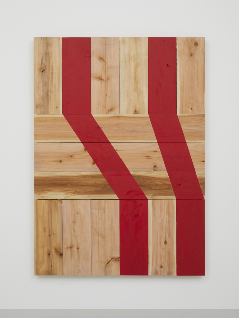 風土の素片 Elemental Fragments of Topology 2019 wood, acrylic h.187.2 x w.134.4 x d.4.5 cm © Kishio Suga