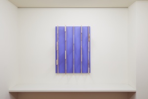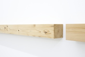 The new works featured in the exhibition include those in which a grid-like framework has been further created inside the wooden frame, wood pieces of varying sizes presented in a rhythmical arrangement, or cross-sections of small logs that appear to be in an endless vertical continuum. In addition, new visual effects created through the application of paint in colors such as red, yellow, and blue bring further vividness to the works.