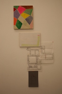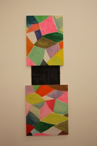 Sugito had finished painting the ground on a number of large canvases in his studio. Some were completely covered with light pastel colors, and some were painted with a grid reminiscent of textile patterns. “When I begin moving my brush, I feel like I am leaving everything behind and walking into the forest all alone. When I do this, I end up seeking words and meanings that take power from the forest, and then I manage to slowly disappear from the place.” (Hiroshi Sugito, press release, Marc Foxx 1996). Recalling this statement, it seems that the trees in the forest of these canvases are waiting quietly for the artist to breathe life into them.