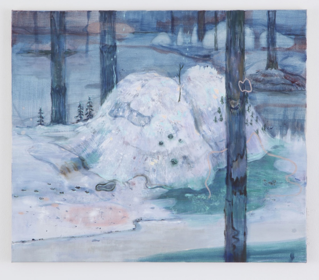 In the landscape paintings by Yuka Kashihara, existing sceneries and imaginary inner spaces are woven together like a fine texture. Such practices have grew out of Kashihara’s, who graduated in Japan and moved to Germany, interests in “distance”; physical distance between Germany and Japan, emotional distance with people and both cultures, and the distance inside of herself as Japanese and her living in Germany. Experiencing these “distances” and movements have brought her the changes in the perspectives, such as nostalgia for and alienation of the familiar places, and then made her face herself deeply, resulting in the expressions with motifs that convey her deep reflexivity, such as “mountain”, “hole”, “lake” and “forest”. She describes her practices as “digging a hole” to know herself. In the last solo exhibition “Amid” at Tomio Koyama Gallery in 2011, she presented these paintings.