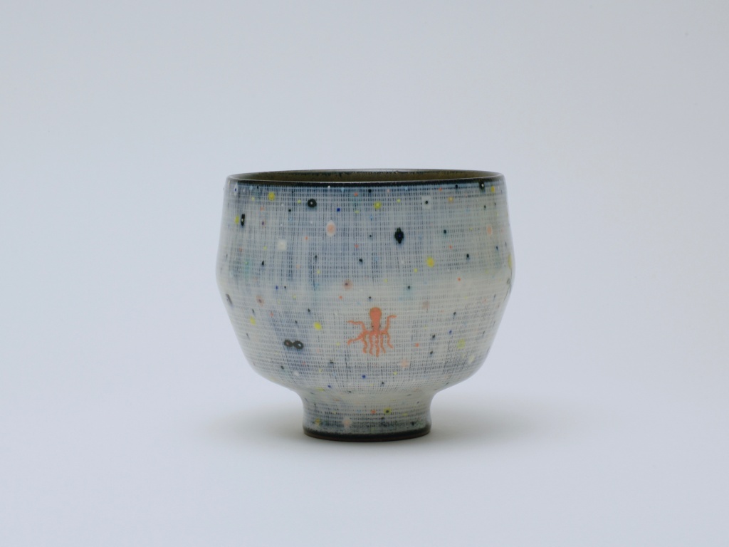 A smooth touch like that of frosted glass and glossy colors are particular to Shohei Fujita’s work, and result from his original technique of layering glazes and then filing away at them for a long time. Sometimes he does not even know which colors will appear until filing the work after the process of glazing and firing. Fujita arrived at this technique after many years of experiments in layering glazes and combinations of colors. The series of small flower vases and pots is called Sekka (stone fruits), with inspirations from the smooth touch of plumply rounded pieces of broken glass shaped by waves found on the beaches or riverbeds of the Setouchi area where the artist is based, embraces beautiful curves that invite us to wrap in our hands. Fujita remarks that what he thinks is beautiful is always connected with nature. The colors which inspire him in nature, especially around water such as seas, rivers, or lakes, seem to have emerged wondrously from the earth itself, letting us sense their organic warmth, and leading us to recollect the existence of not only the earth but the entire universe.