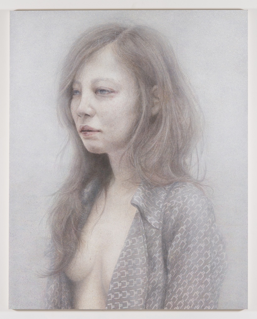 Satoko Nachi’s large portrait occupies the space, and the artist’s rawly-exposed emotions approach directly into our hearts. The motifs depicted intricately on her large canvases are the artist herself, or her friends of the same age, but they evoke a divinity like that of the Holy Mother. Nachi remarks, “When I paint, the lonelier I am, the stronger I become. I do not feel loneliness.” Her work is born out of confronting the very depths of what lies within her own heart, and it embraces not only feminine elements such as purity and romanticism, emotions and fragility, but also the nature of human and universal pain and loneliness. Yet viewers may also sense the attraction of the internal nobility and beauty emerging from therein.
