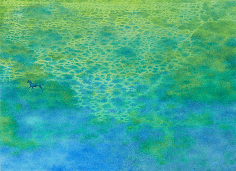 走り去る馬  Run Away Horse  2017  watercolor on paper mounted on panel  53.0 x 72.9 cm  ©︎Yoshino Masui