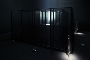小山登美夫ギャラリーでの展覧会「灯 あかり」では、震災を受けた日本に灯をもたらすような、数々の作品を展示します。《灯への道》は、観客が巨大な迷路の中を歩き、暗闇を抜けた先に光を見つける作品。《ミエナイ人タチ》、暗闇の中のほのかな光にうつし出される透明な人型のオブジェ。広島市現代美術館で展示された《ノコリ》、東日本大震災で倒壊した家の部材、家具を再建への願いを込めて並べた作品の再制作。また、同作品の一部に基づいて、今回の「灯 あかり」展のために制作した新作エディション作品《AIR CLOCK》も展示されます。そして6Fのスペースには、作家の祈 りと思いが込められた文字が展示されます。