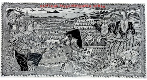 Kulonprogo (Land of Brothers), 2012 Woodblock print on fabric, 122.0 x 244.0 cm, 3/5 e.d., ©Mohamad ‘Ucup’ Yusuf -