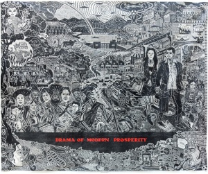 Modernism, 2013 Woodblock print on fabric, 121.0 x 146.0 cm, 1/6 e.d., ©Mohamad ‘Ucup’ Yusuf -