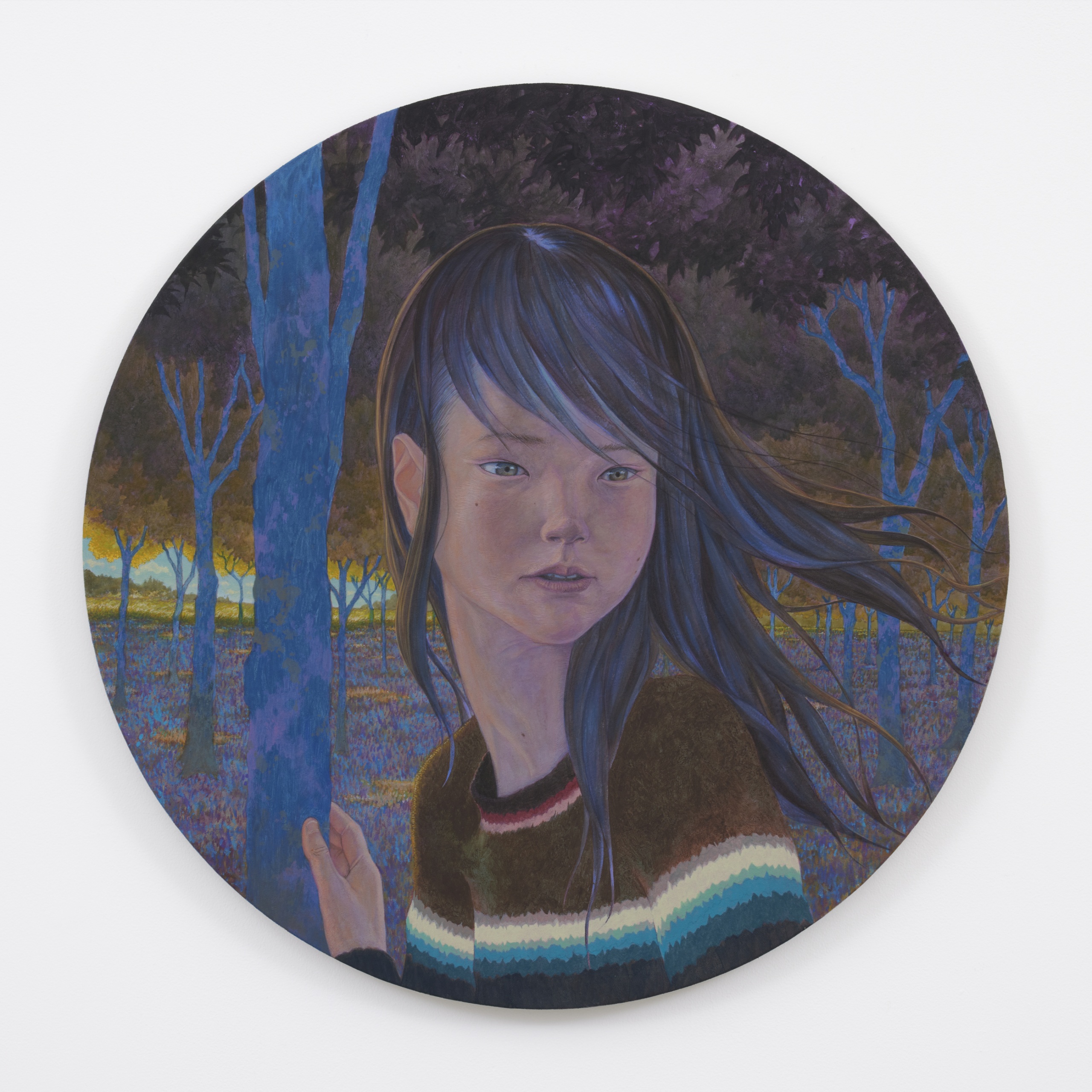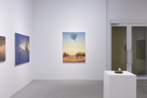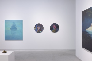 青く透んだ色調と、美しいマチエールによるモチーフや風景は、一見リアルでわかりやすく見えますが、それは何かの意味があるというより、壮大なスケールによる隠喩的かつ哲学的な世界として表わされています。