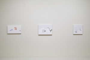 本展のタイトル「heavenly peach」は芳香剤のような、何かが終わった後に残っている微かな香りのイメージだと桑原は言います。出展作の「遺品」も、亡くなった人の持物が持ち主がいなくなった後にもぽつんと残っている、その儚げな様子を表しています。
