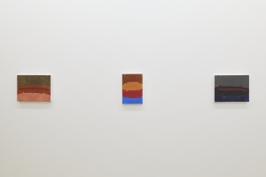 彼のペインティング作品は、均質性ある絵具の層で楕円が描かれ、背景と様々な色が塗り分けられています。同時にブラシでペイントの表面を薄め、厚みある層の少量のペイントを別の箇所に移動し、「色」を「物質」として浮かび上がらせます。 彫刻作品では、素材をずらしたりカットすることで、ブロンズの硬い素材が粘度を伴ってうねり、ふくれあがるように見え、脆さや儚さまで感じさせるかもしれません。それは作品と重さのささやかな対話と、変化のプロセスを表現しているようです。