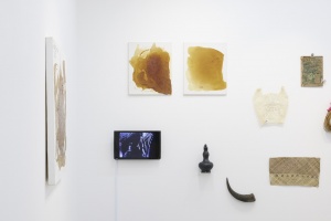 ギャラリーの次のスペースでは、「作家自身の創作」である、赤道にまつわる伝統的な素材、手法を用いた小さなアートワークが並び、「赤道の伝承」インスタレーション作品として展示されます。