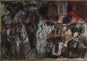 • Flame of the Temple, 1999 Mixed Media on paper, 165cm x 120cm, ©Goh Chai Seng