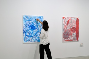 天王洲では、来場者の参加とパフォーマンスを促す鑑賞型作品である、「Wrapping Piece」、「Draw Circle Painting」を主に展示します。