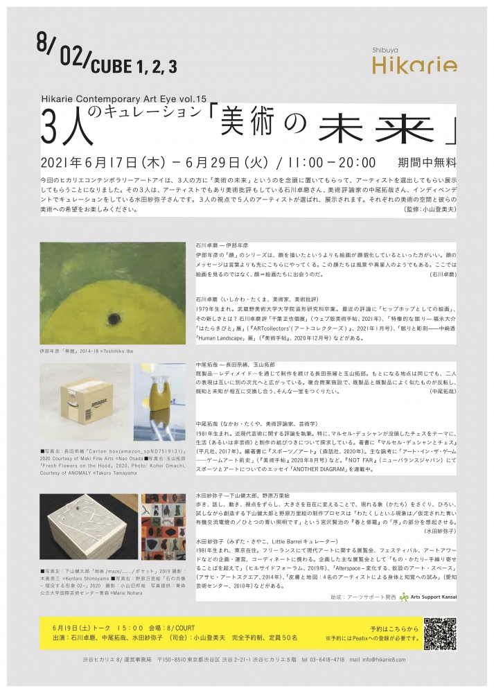 Shibuya Hikarie Contemporary Art Eye Vol.15『3人のキュレーション「美術の未来」』渋谷ヒカリエ8階CUBE1,2,3、東京、2021年6月17日[木]– 2021年6月29日[火]